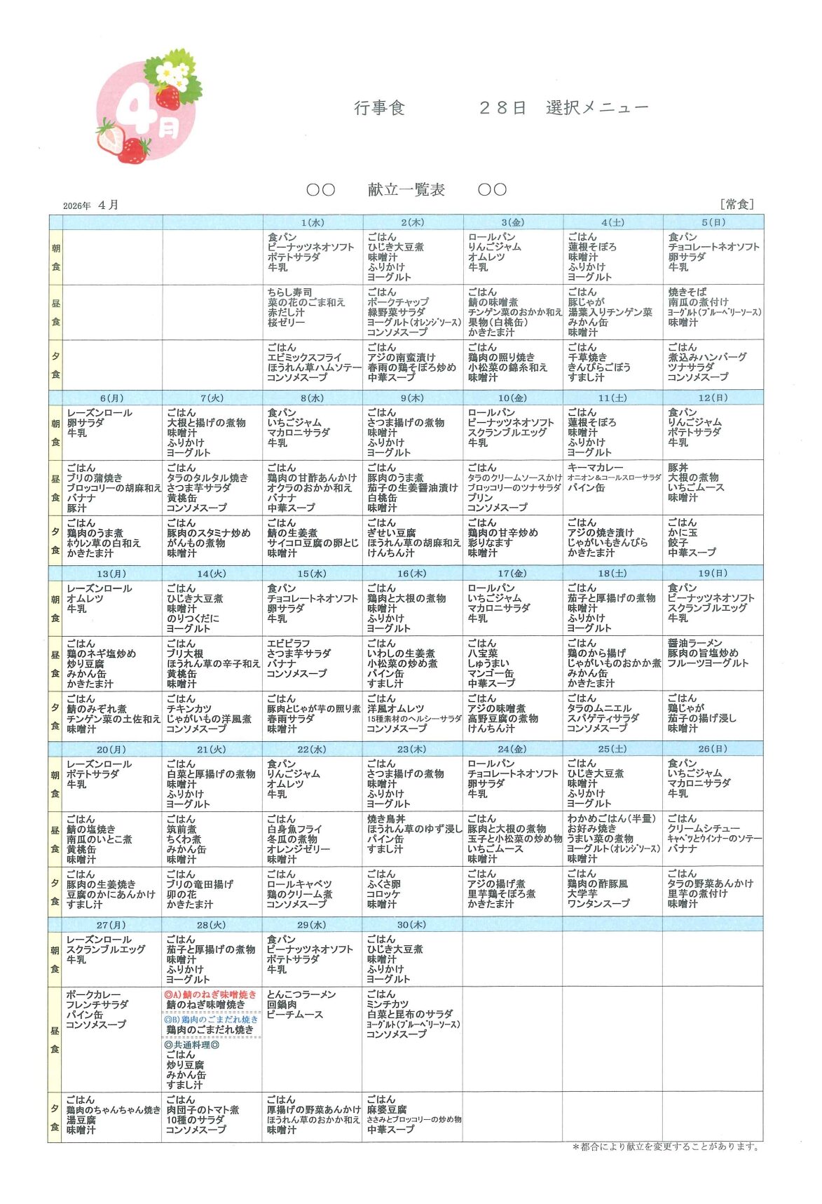 4月分献立表